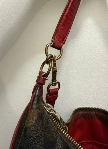 Coach adjustable bag crossbody, removable strap shoulder bag. Red fabric lining. Very worn.