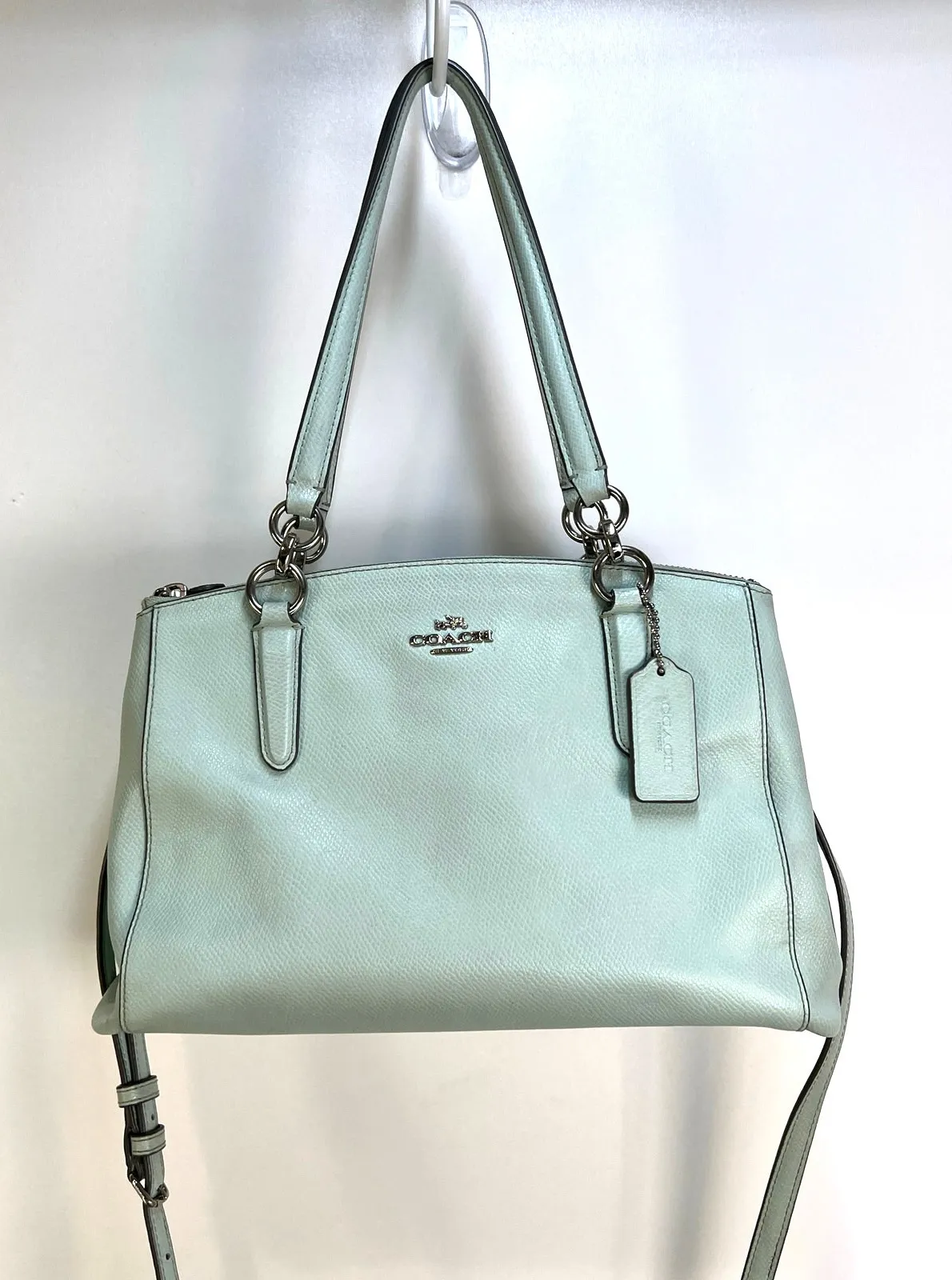 Coach Small Christie Carryall Satchel Shoulder Bag F36637 Mint Blue Crossgrain Leather Size 10 1/2"... Show more