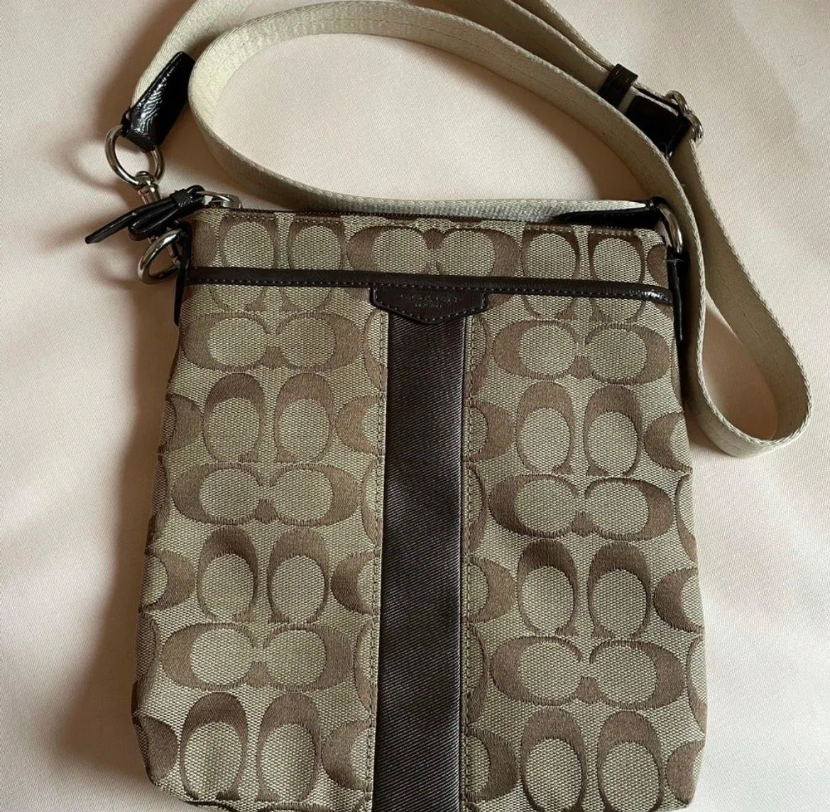 Barely used and in perfect condition with no signs of wear! A small crossbody bag with a tan and bro... Show more
