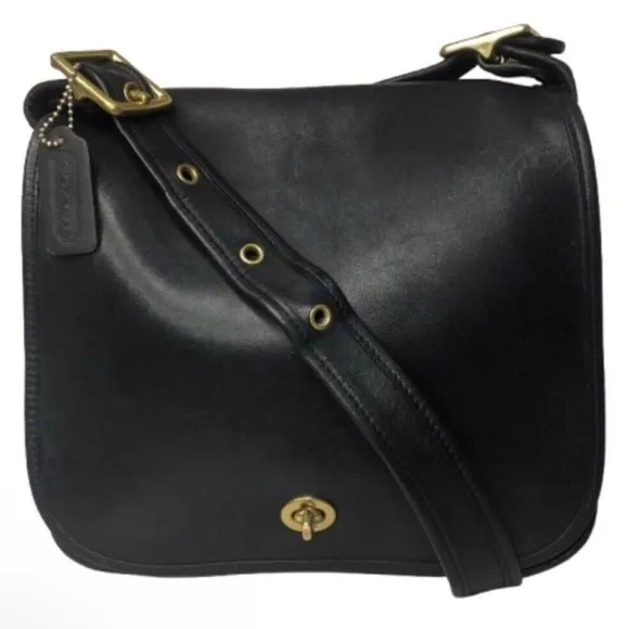 VINTAGE COACH Stewardess Black Glove Tanned Cowhide Leather with Single Front Flap and Brass Turn Lo... Show more