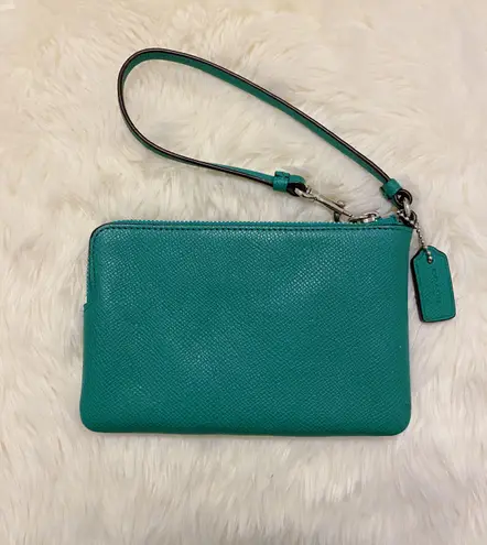 Super great condition! Teal leather Two credit card pockets Zip closure, fabric lining Strap with... Show more