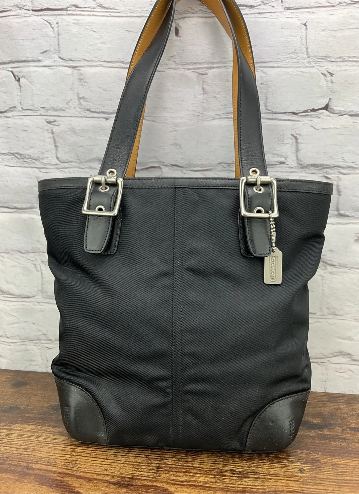 This Coach Vintage Black Canvas and Leather Mini Tote Shoulder Bag 1835 is a stylish accessory for a... Show more