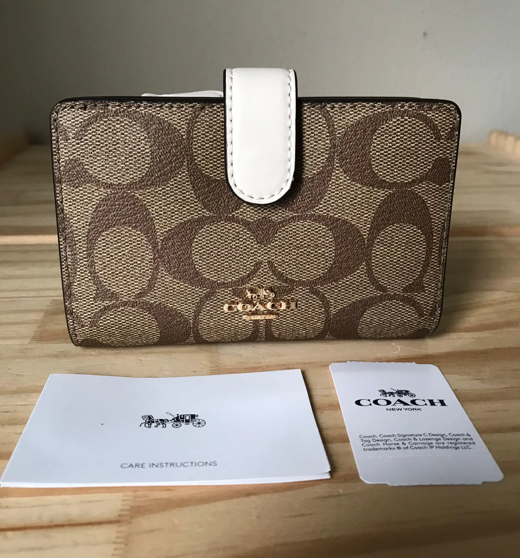 100% authentic Coach wallet F23553 Signature medium corner zip Khaki chalk and gold hardware Brand... Show more