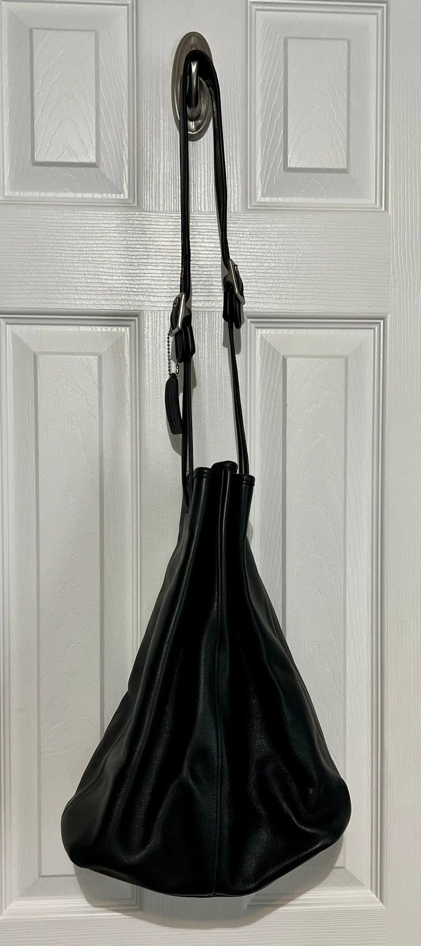 Authentic classic vintage Coach XL Legacy Drawstring Bucket Bag 9166, soft genuine black leather, si... Show more