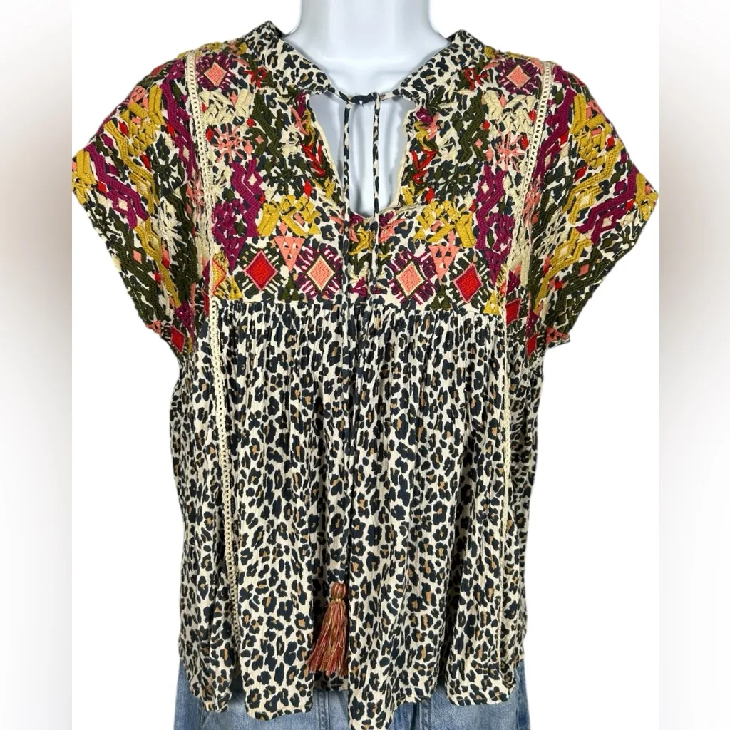 Coast Womens Mixed Media Embroidered Cheetah Tribal Animal Print Tassel Shirt Size xs Excellent condition Approximate Measurements- Length:24” Underarm To Underarm: 20” Boho, bohemian, indie sleeze, festival, maximalism, business casual, school