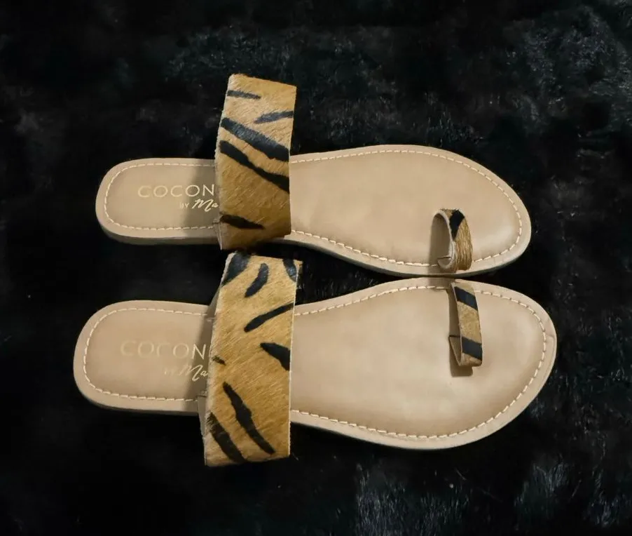 COCONUTS BY MATISSE Riva Leather Calf Hair Animal Print Sandals Flats Toe Ring 9 - $26 - From Samantha