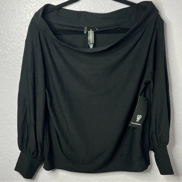 Brand New! Coldesina Stevie Top Size: Small Color: Black Buttery soft and comfy Off the shoulder Super sexy! Long sleeves with ribbed cuff Ribbed at bottom of sweater for perfect look! Approximate measurements: Pit to Pit - 21” Collar to bottom- 22” B21