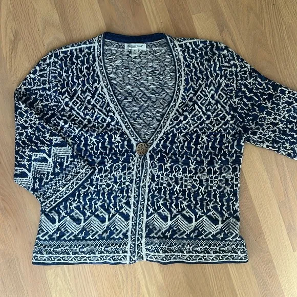 Coldwater Creek Blue Lightweight Wooden Button Cardigan Nordic Knit Sweater Perfect Loose fit Wide sleeve 3/4 Measurements in photos Artsy Art teacher Knit Nordic Wooden Button Boho Bohemian