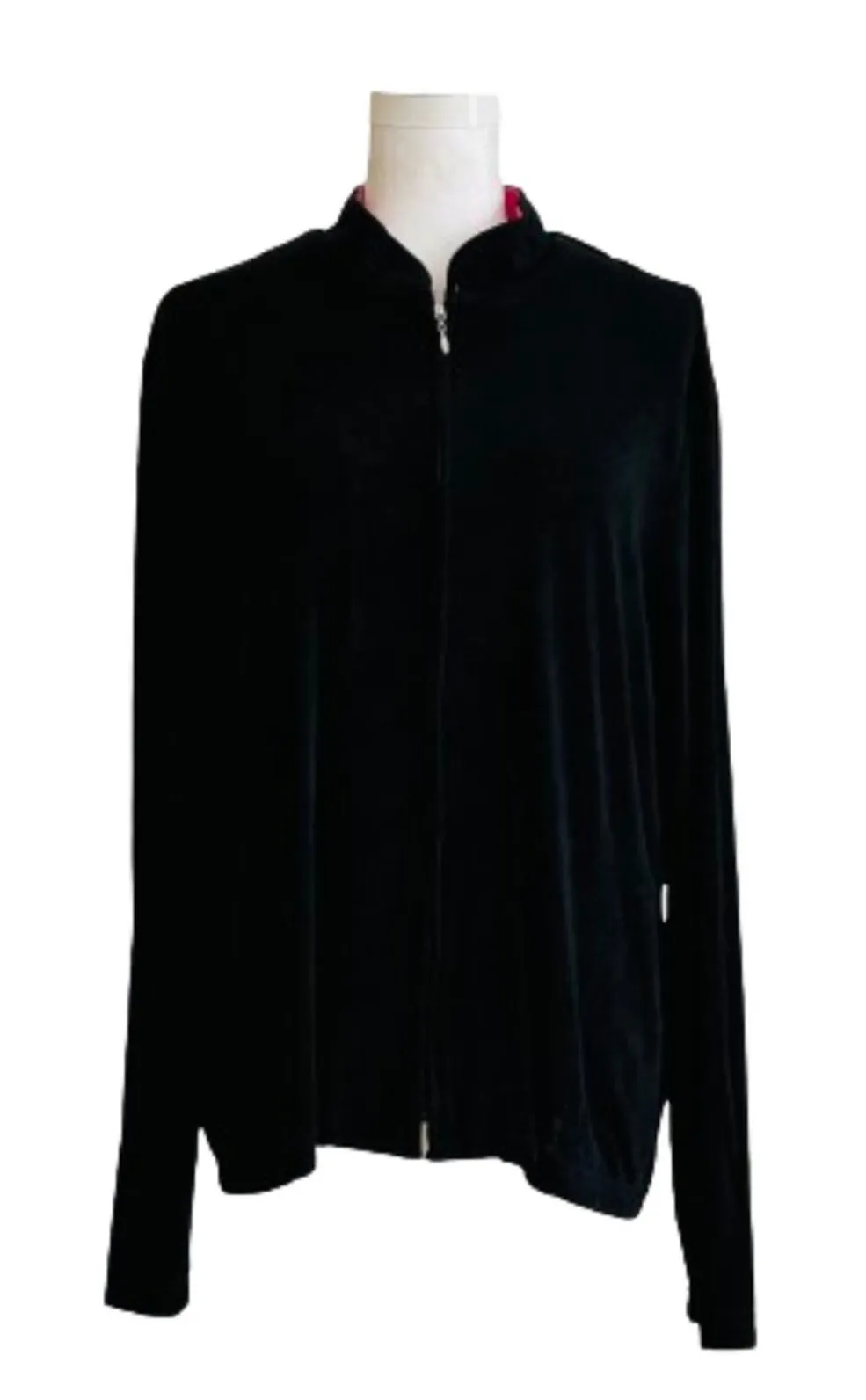 Coldwater Creek Black Pink Trim Slinky Full Zipper Front Side Pockets Cardigan Jacket Size XL EUC... Show more