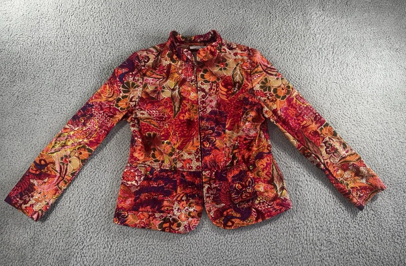 Coldwater‎ Creek Women Large Floral Boho Chic Tapestry Blazer Jacquard Jacket Red - $16 - From Remire