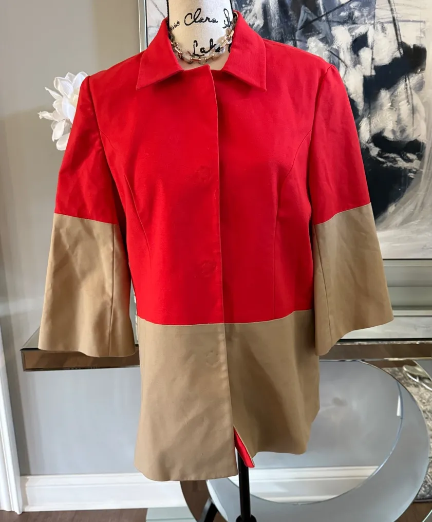 Coldwater Creek jacket ! Size 12 color block jacket from the brand Coldwater Creek. The jacket features a kimono-style design with a hidden snap placket , versatile piece that can add a pop of color to an outfit !!! Photos with measurements have been provided for your viewing. Please look at the photos. No stains or odors just stunning