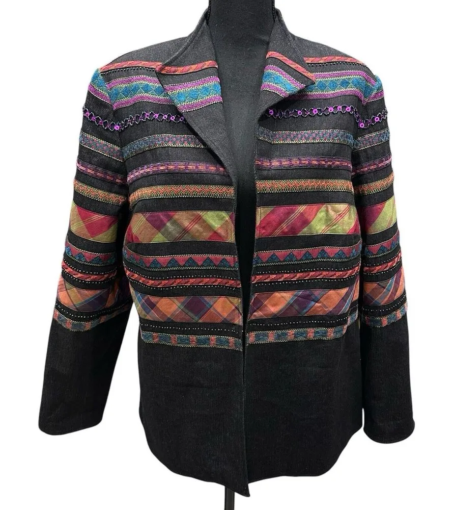 Coldwater Creek Jacket Women 18 Black Denim Artsy Ribbon Embellished Western Jacket is in good preo... Show more