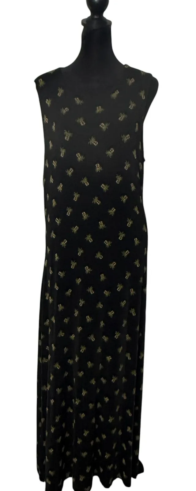 Coldwater Creek Pineapple Print Maxi Dress Size L Slinky Knit Travel Friendly Stretchy Total Length... Show more