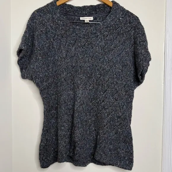 Coldwater Creek Pointelle Knit Gray Short Sleeve Sweater Multicolor Speckle LRG Size L - $28 - From Melanie