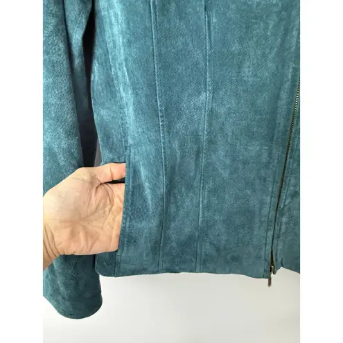 Coldwater Creek genuine suede leather jacket in a rich teal blue. Features a soft brushed texture, c... Show more