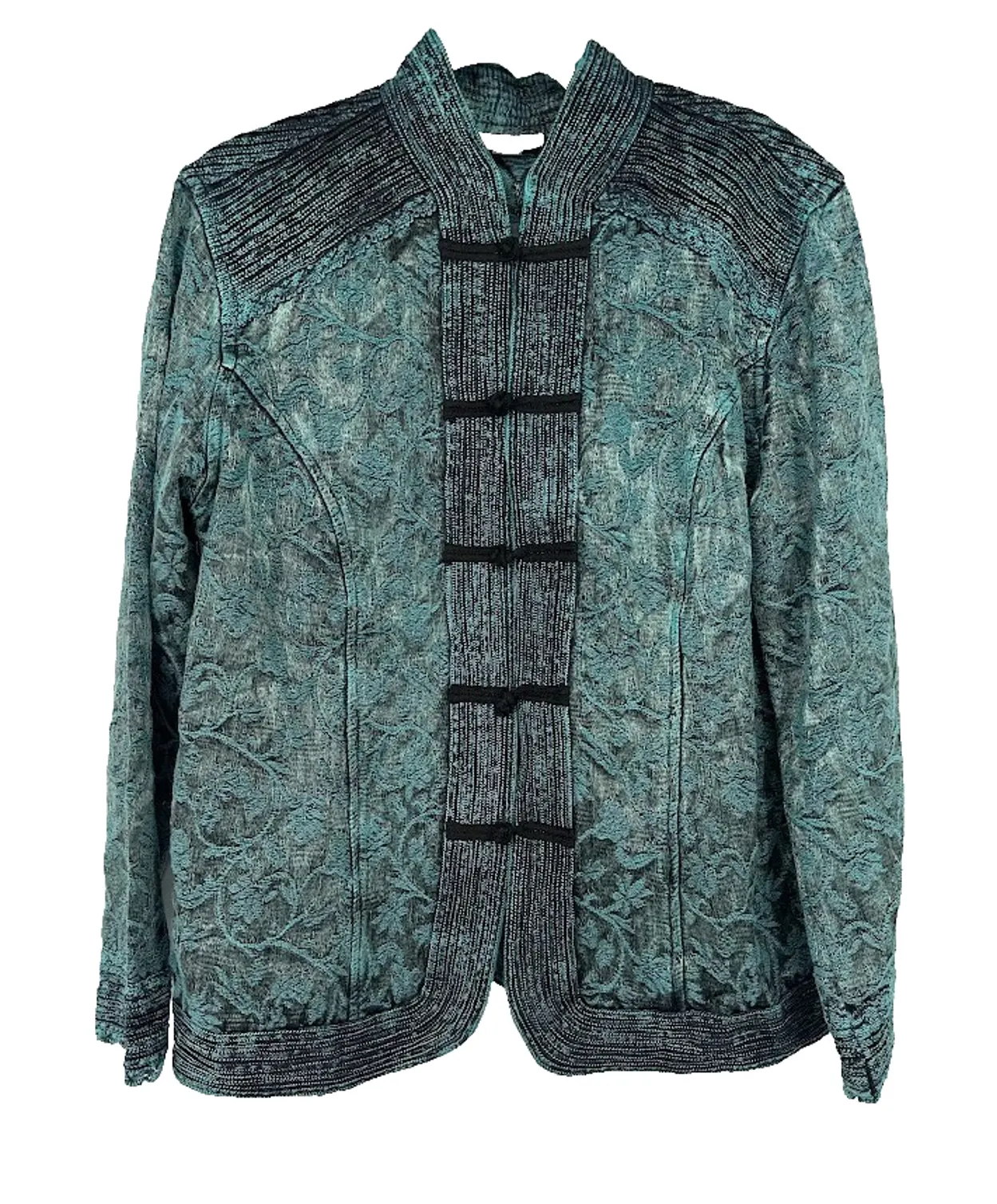 Coldwater Creek Toggle Button Front Blazer Jacket Floral Embroidered Asian Green Womens Size 1X Ve... Show more