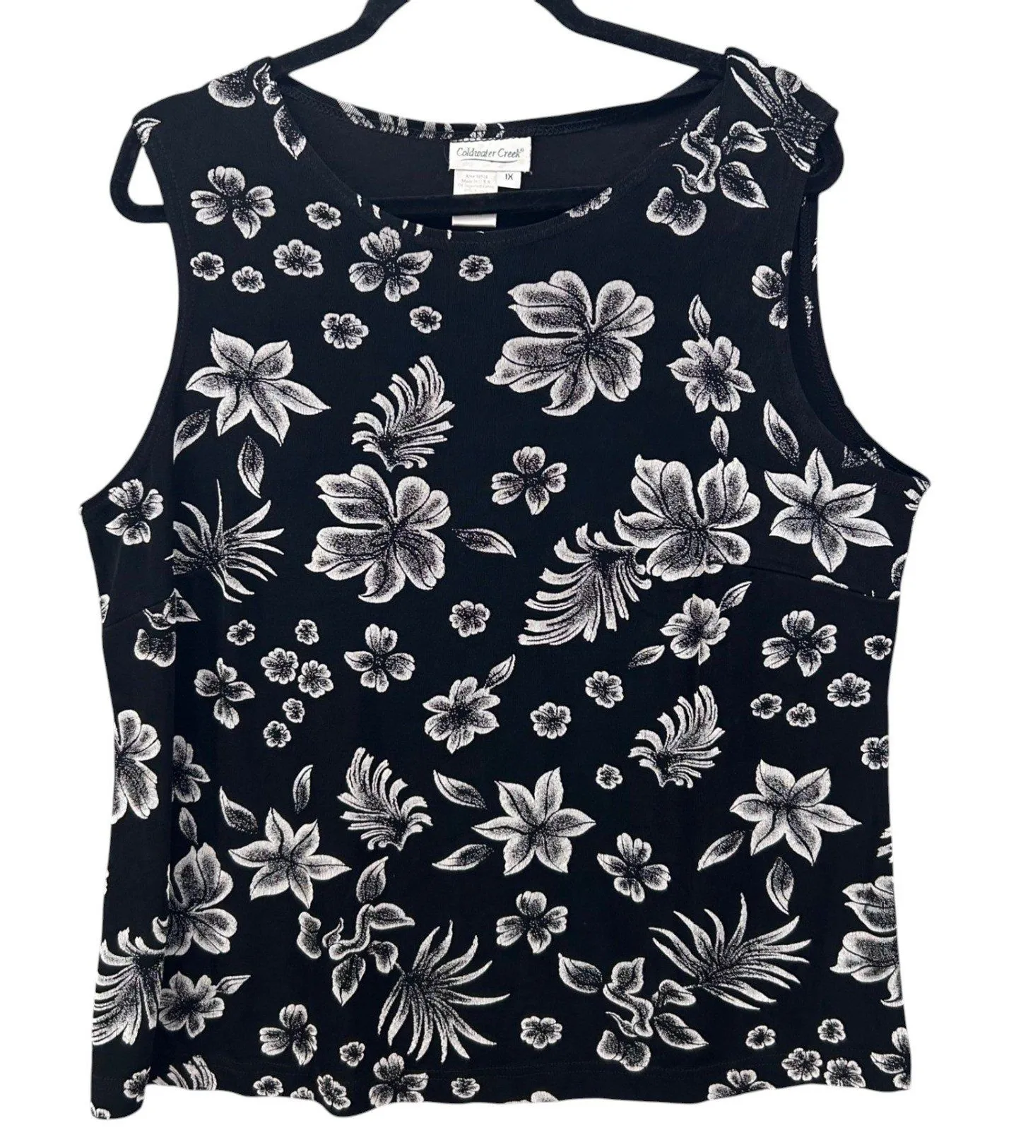 Floral flourishes abound in this vintage-inspired blouse, a harmonious blend of comfort and captivating design. Imagine the soft embrace of the slinky knit fabric against your skin, offering a breathable and effortlessly elegant experience. Featuring a sophisticated round neckline and a flattering sleeveless cut, the blouse showcases a mesmerizing black backdrop adorned with delicate white floral patterns. This wearable work of art exudes a subtle charm, elevating your style with a touch of romantic allure and timeless sophistication. Measurements: • Pit to pit: 20 inches • Length: 25 inches Thank you for checking my item. If you have any questions before and after purchase, please contact me first. Items came from smoke free, dog friendly home Please check measurement before buying. Measurements are also on photo. My handling time is 1 business day. Bundle and save Have a great day!!!!!If the item is used, it was washed and I used a fabric softener which is either fresh scent, lemon, or lavender scent. If its new, I used Dryel.