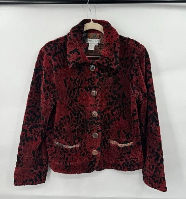 Great pre owned condition. Fabric covered buttons. Fleece. Size small. Button front. Print is l... Show more