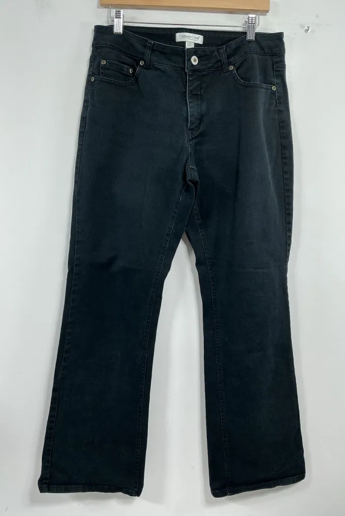 These Women's Size 10 Coldwater Creek Black Jeans in excellent condition are a stylish and versatile addition to any wardrobe. Made from a blend of spandex and cotton denim, these jeans offer a comfortable mid-rise fit with a regular straight leg style. The solid black color and zip/button closure make them easy to wear year-round, while the machine washable fabric ensures low maintenance. Perfect for all seasons, these jeans can be dressed up or down for any occasion. Approximate measurements; Waist 15.5” (31”) Rise 10” inseam 31” These jeans are pre owned and look to be in excellent condition!