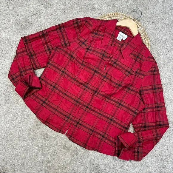 Coldwater Creek Women’s Silk Blend Plaid Tartan Full Zip Longsleeve Top Red XL - $22 - From Elmee