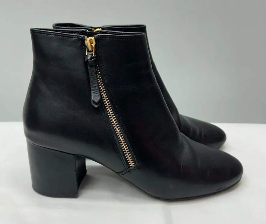 Cole Haan classic black leather booties with gold zipper accents women's 9 so soft! some scuffing on... Show more