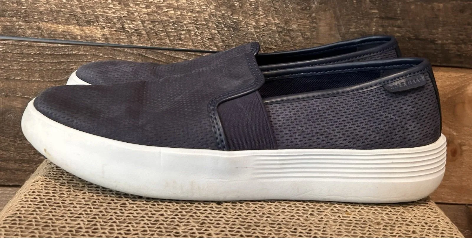 The Cole Haan Grand.OS Blue Slip On Flats are lightweight shoes designed for women in size 10B. Thes... Show more