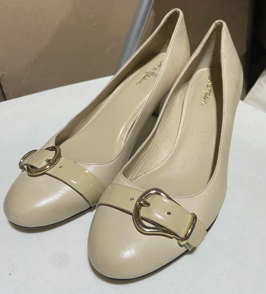 Elegant cream heels with a stylish gold buckle. Perfect for any occasion! New without box. Size 9.5