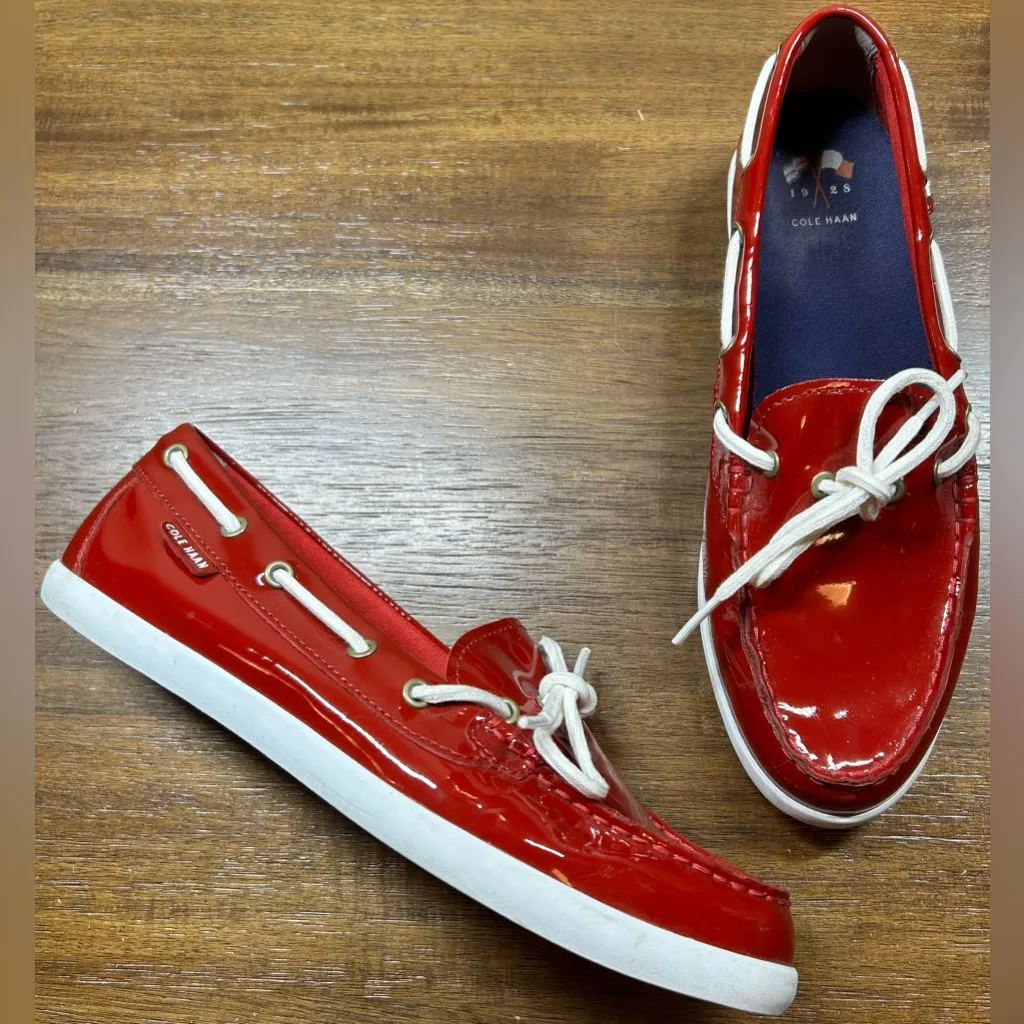 The Cole Haan Size 8.5 Nantucket Camp Moc Boat Casual Moccasins in red are stylish and versatile fla... Show more