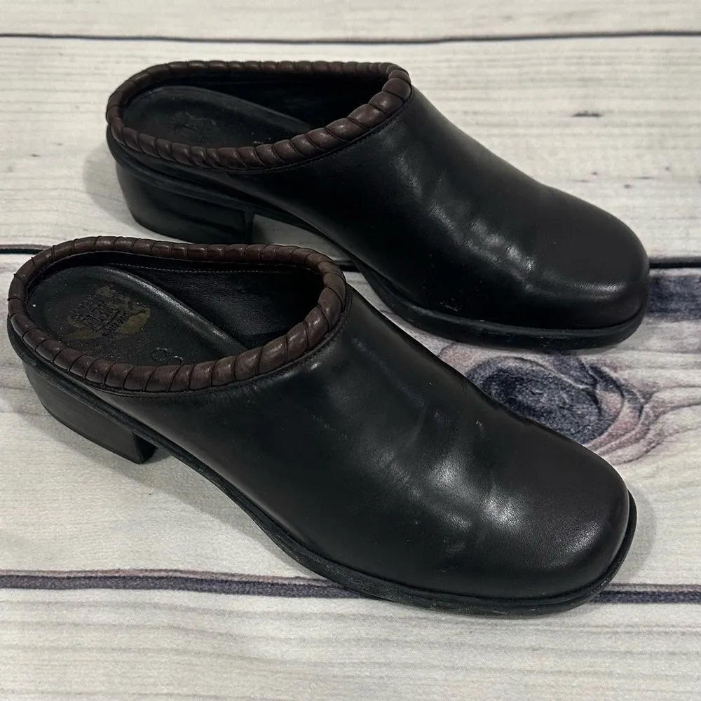 Cole Haan Black Leather Heeled Mules Slides Brown Rope Edging Women’s Size 6 Very Good Used Condit... Show more