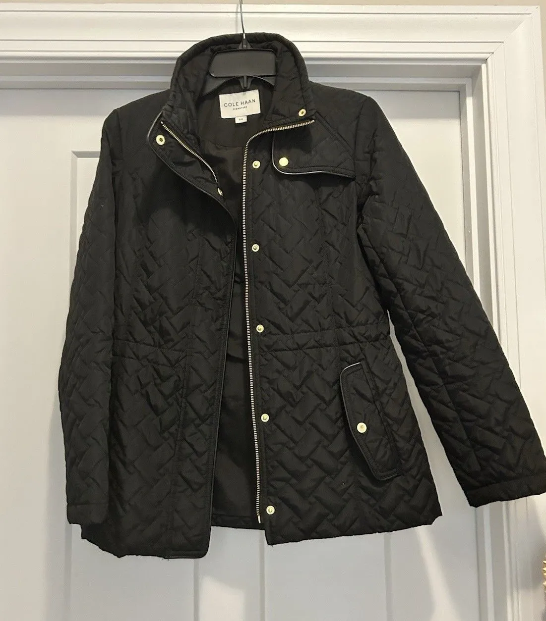 The Cole Haan Women's Coat in black, size small, is a stylish and versatile mid-length outerwear pie... Show more