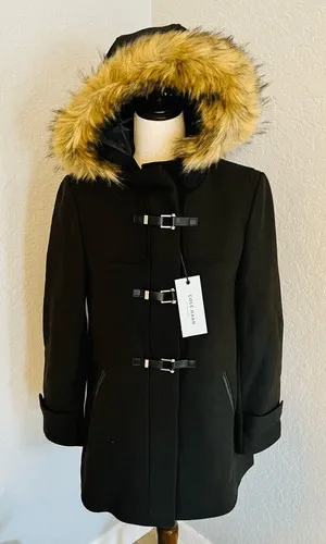 Cole Haan Wool Blend Faux Fur Trim Hooded Coat,‎ Brown, Size 4, NWT Brown - $131 New With Tags - From Tiffani