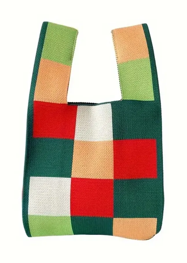 Colorblock Plaid Knitted Style Korean Style‎ Aesthetic Knotted Wrist Bag Woven - $28 New With Tags - From Mon