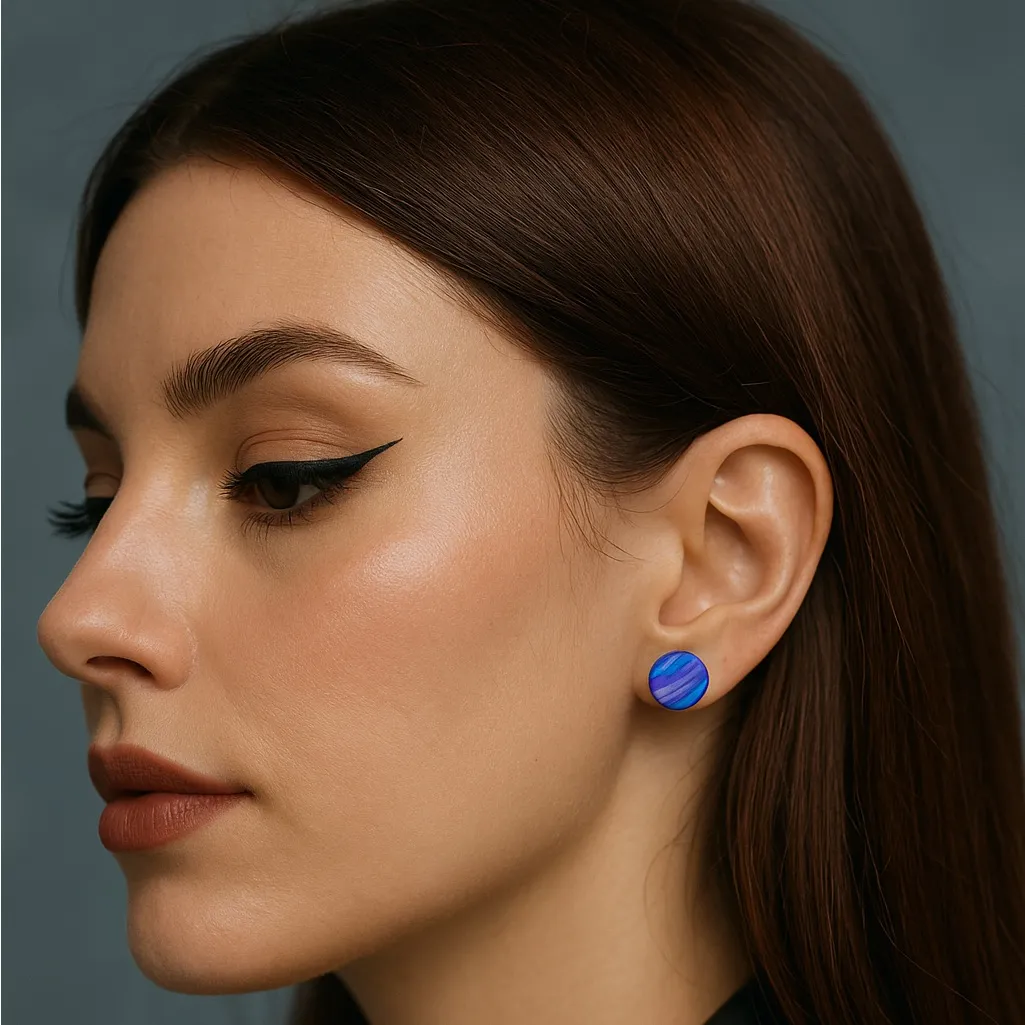 ends Add a bold pop of color to your look with these colorful faux plug earrings. Featuring a striking swirl design in shades of blue, pink, and purple, these illusion-style studs mimic the look of real gauges without the commitment. Lightweight and easy to wear, they offer the edgy appearance of plugs with the comfort of standard post earrings. Perfect for anyone wanting to experiment with alternative style, these faux plug earrings are a fun and vibrant accessory for everyday wear or festivals. 16g post 10mm ends.