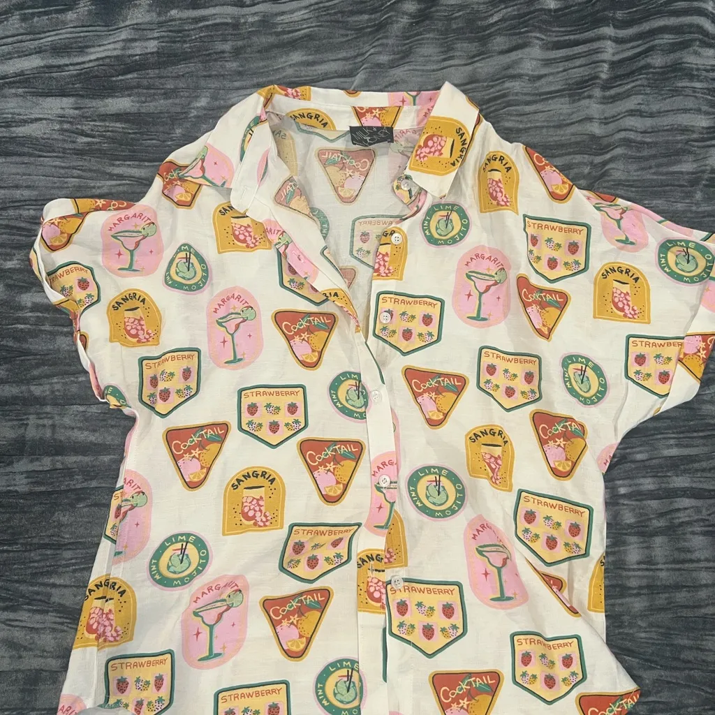Colorful Graphic Margarita Button-Up Shirt Size M by Milk n Honey Pink Size M - $10 New With Tags - From mood
