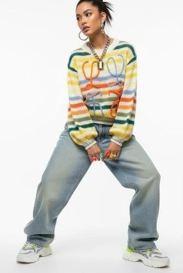 Brighten your wardrobe with this colorful striped sweater. Featuring vibrant shades of yellow, green... Show more