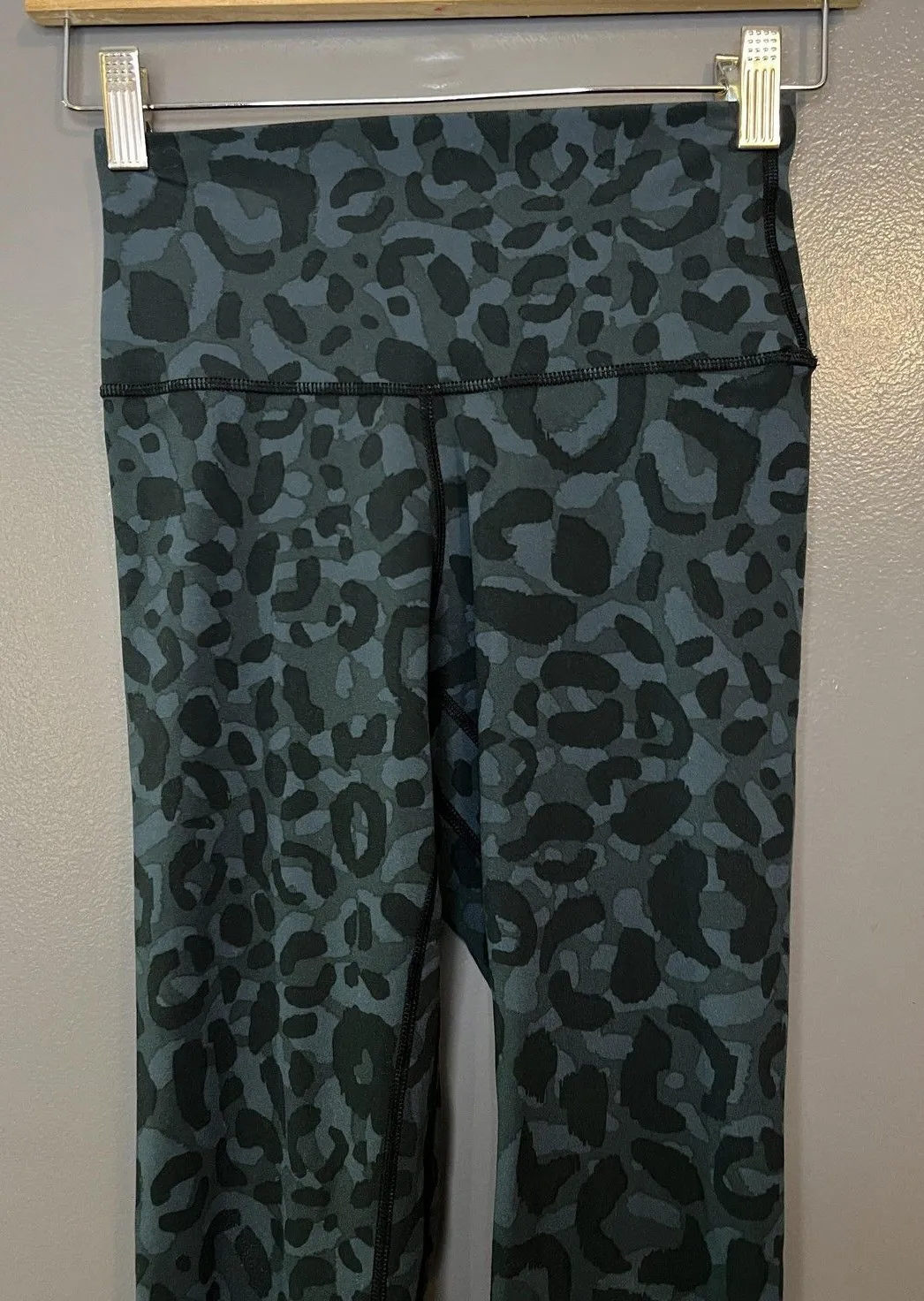 Brand: Colorfulkoala (inner label reads "colorfulkoala") Item: Womens leggings Tag size: XS Pattern/Color: Dark green and black leopard print Material: 75% Polyester, 25% Spandex Features: High-waisted wide waistband for support Features: Full-length leg; soft, stretchy performance fabric Visible care instructions: Wash with like colors; Machine wash cold; Do not bleach; Tumble dry low; Do not iron; Do not dry clean Country of origin: Made in China Notes: Great for yoga, gym, running, or everyday athleisure Waist lying flat 22" Rise 9.5" Inseam 28" bin 13