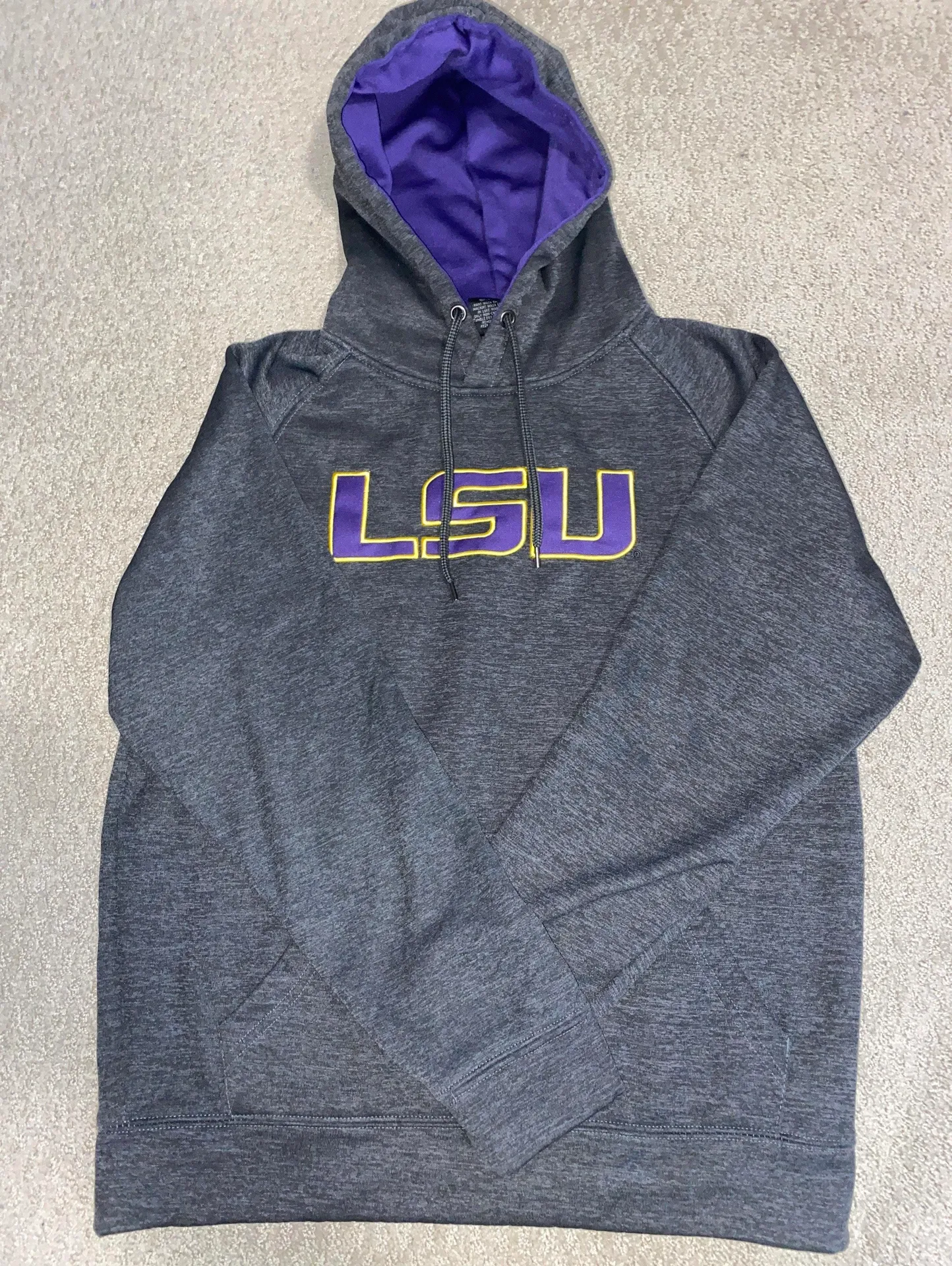 size M, really good condition, grey hoodie with purple hood on the inside