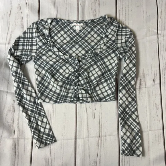 Colsie FleecePlaid Cropped Lounge Pajamas Top Women’s S New Black - $7 - From Sonya