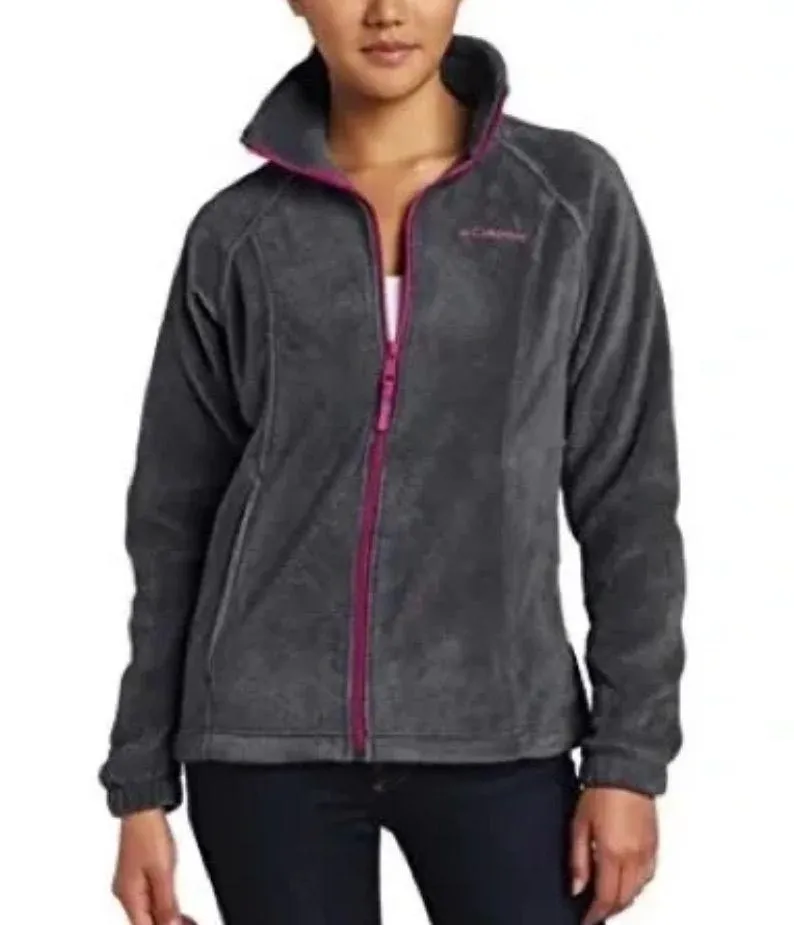 Classic Columbia zip up fleece. Dark grey, almost black color with a pinkish purple zipper. Size Med... Show more