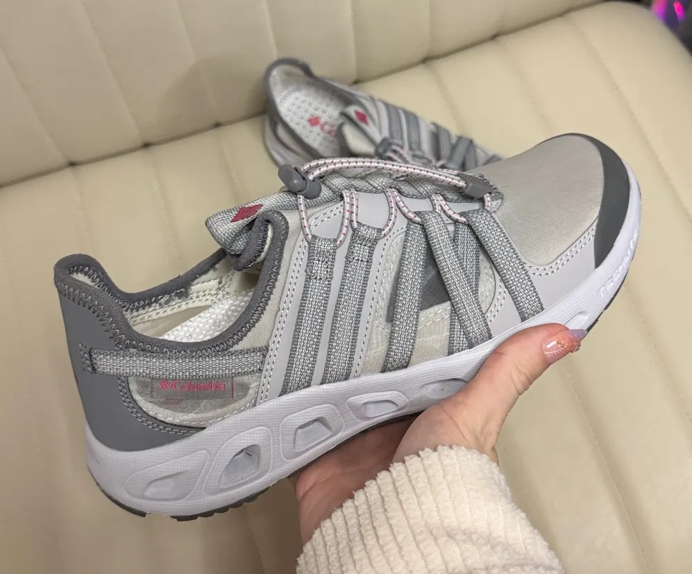 Columbia sneakers in gray and white. Ideal for everyday wear. New no box slip on lightweight size 7.... Show more