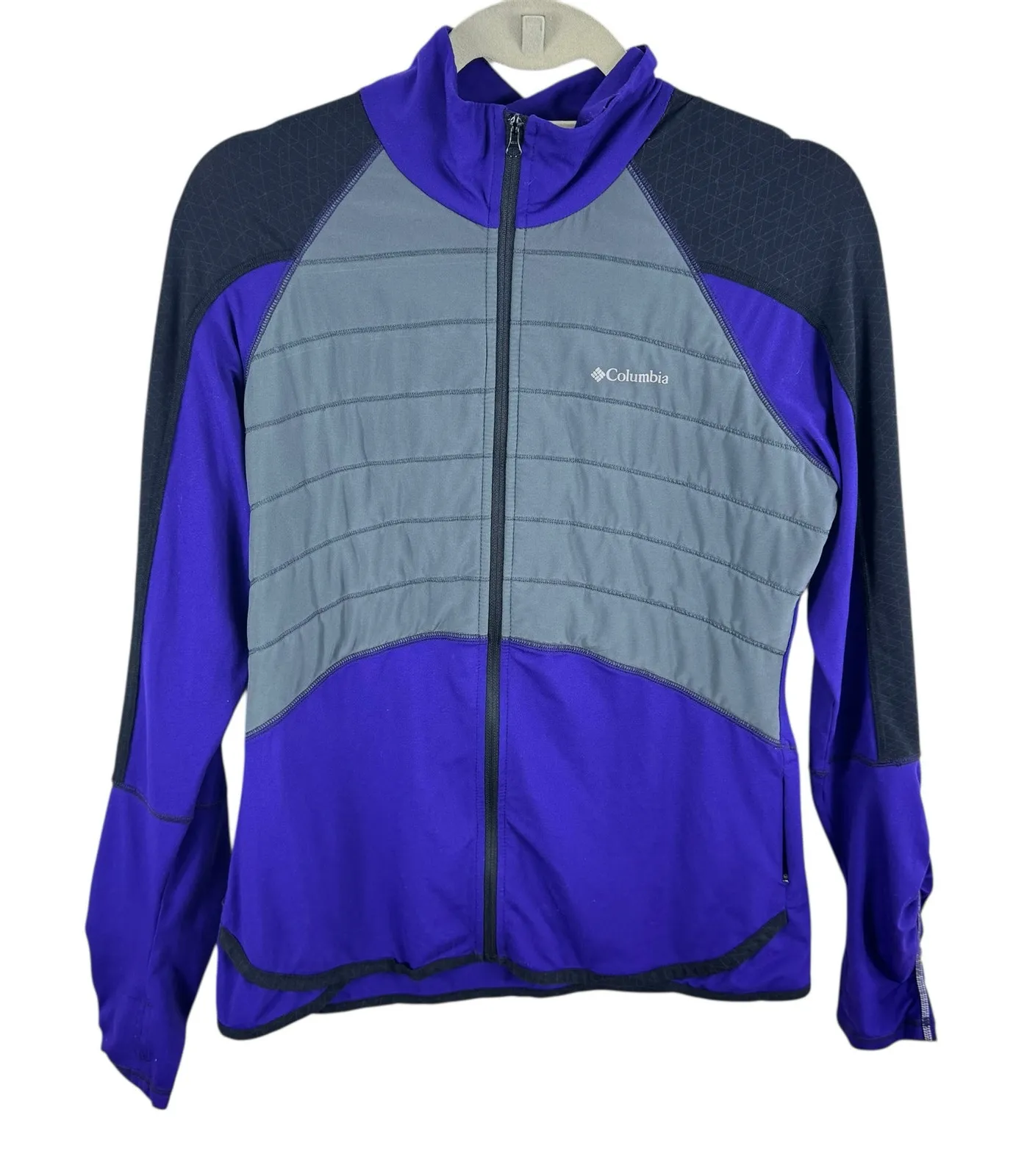 Excellent preowned condition. Columbia Omni-Wick Purple, Gray, & Black Stretchy Full Zip Light Jacke... Show more