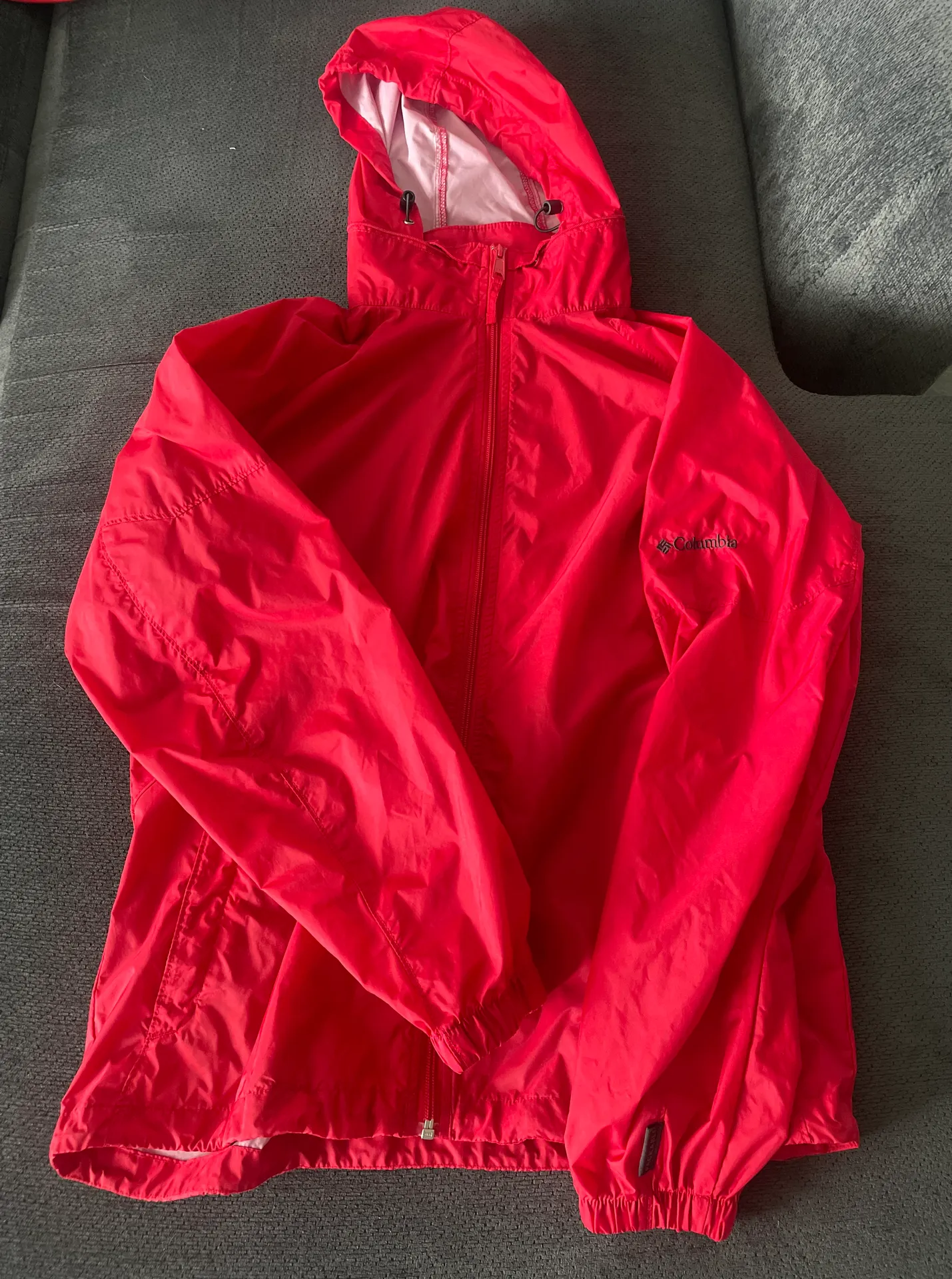Red Columbia Women’s rain jacket. Size large. Absolutely no flaws in great condition. Perfect for an... Show more