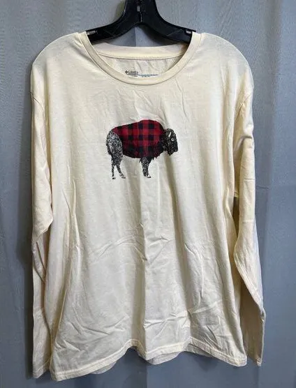 This Columbia long sleeve t-shirt features a distinctive buffalo print on a soft beige fabric. Made... Show more