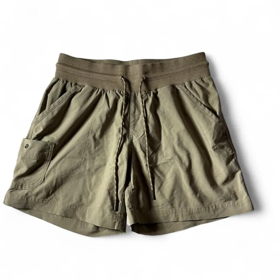 Columbia Sportswear Women's Medium Brown Hiking Shorts Elastic Waist Elevated comfort meets outdoor readiness in these versatile shorts. Boasting a relaxed silhouette and an elastic waistband with a drawstring, they promise a secure and flattering fit. The classic cargo pocket adds a touch of utility, while the breathable fabric ensures all-day comfort, whether you're hiking scenic trails or exploring bustling city streets. Perfect for casual weekend adventures, relaxed travel days, or simply enjoying a sunny afternoon in the park. Keywords: Columbia, shorts, womens, medium, brown, hiking shorts, elastic waist, drawstring, cargo shorts, activewear, casual shorts, outdoor, comfortable, sportswear #Gorpcore #Hiking #Athleisure #Columbia #Outdoors