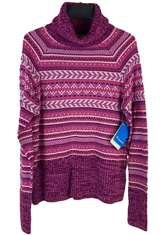 Columbia Winter Worn II pullover turtleneck sweater with pink, purple and white stripes and details.... Show more