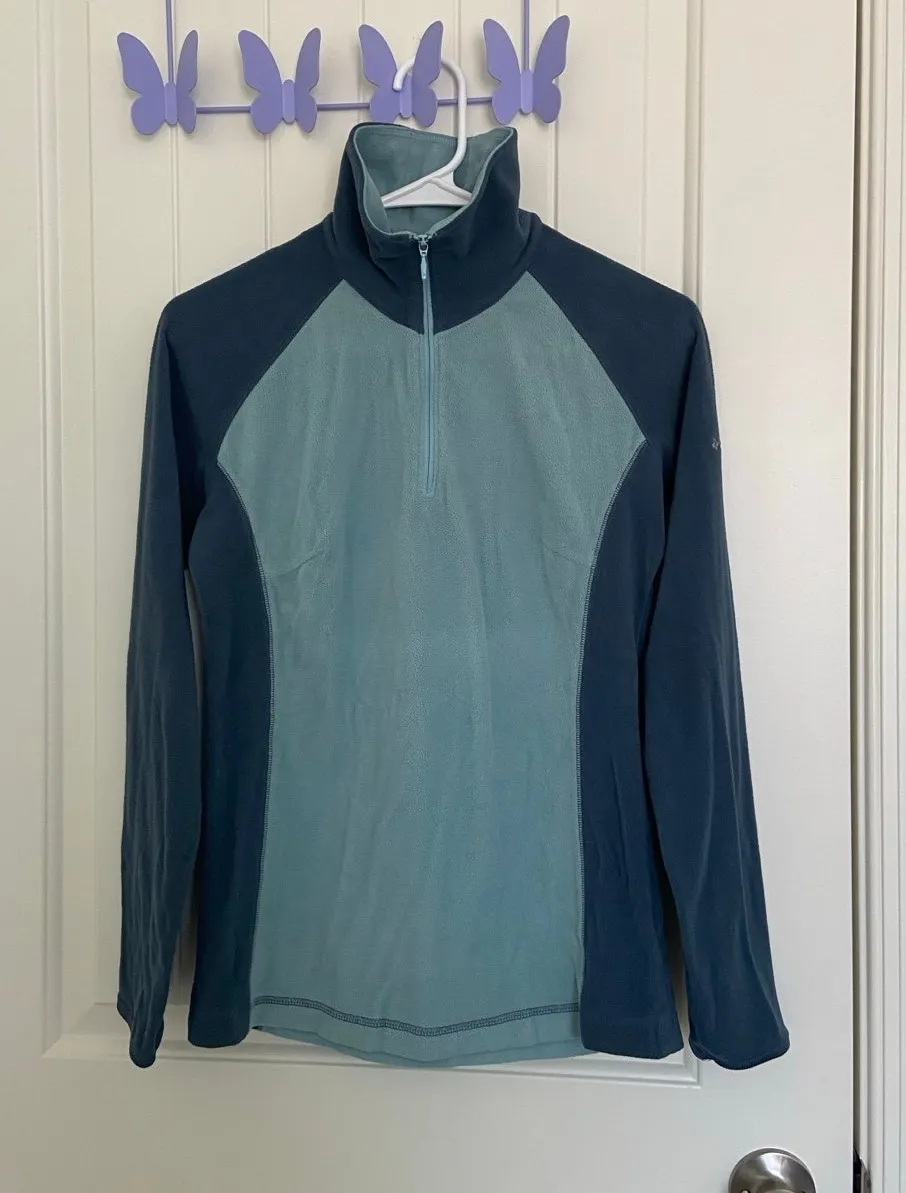 Women's Columbia glacier fleece jacket. Jacket is two different shades of blue with a quarter zip. N... Show more