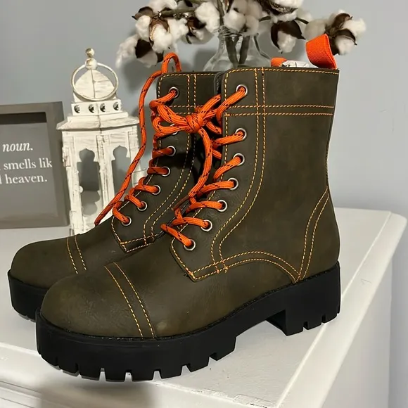 Combat Boots Jodi Olive Green Lace Up Booties Seven7 Womens 7 Hiking - $42 New With Tags - From Debbie