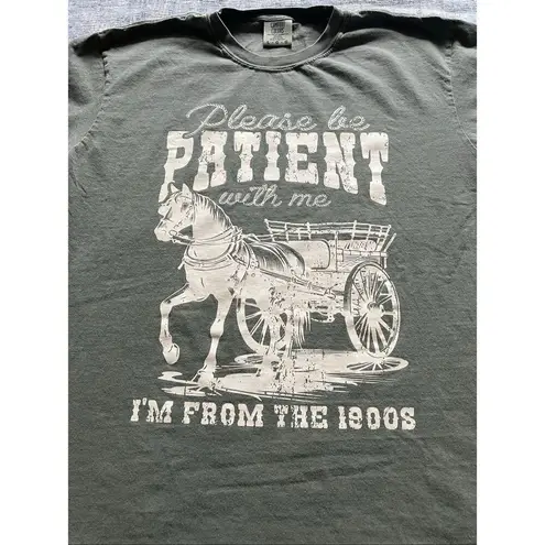 Comfort Colors Faded Green From The 1900s Novelty Tee Large Antique faded olive green colored tee w... Show more