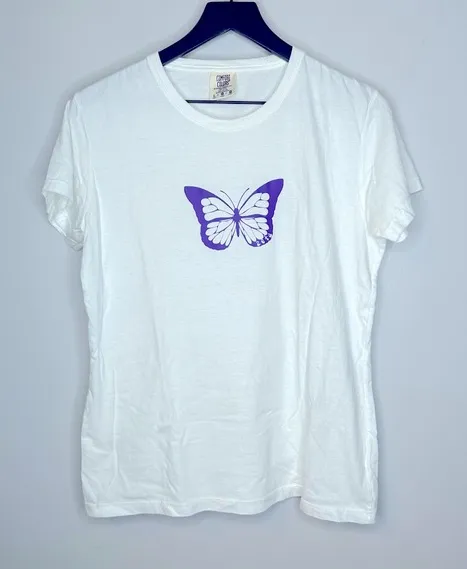 Comfort Colors Purple and White Zeta Butterfly Tee. Size L 100% cotton Approximate measurements... Show more