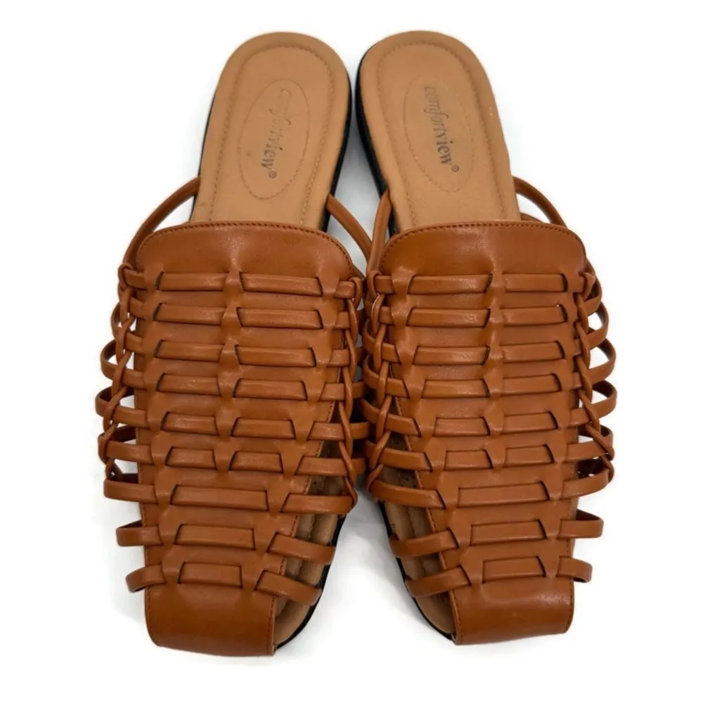 Comfortview Wendy Sandals Comfortview Shoe Mule Slides. The perfect slide for vacation traveling! - Size: 11 - please note that these seem like an 11, but I can’t read the label on them. Measurements shown in photo. - Condition: Excellent preowned condition - see pics - Color: Brown/tan/camel